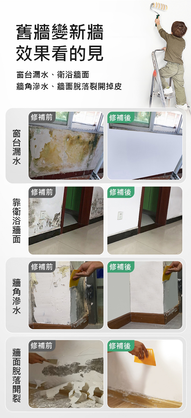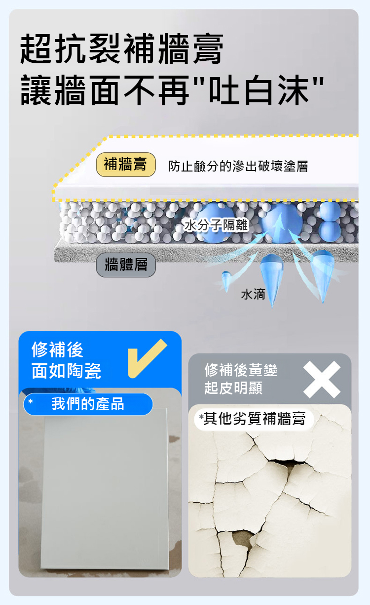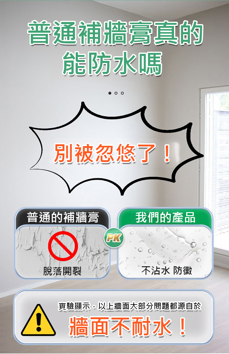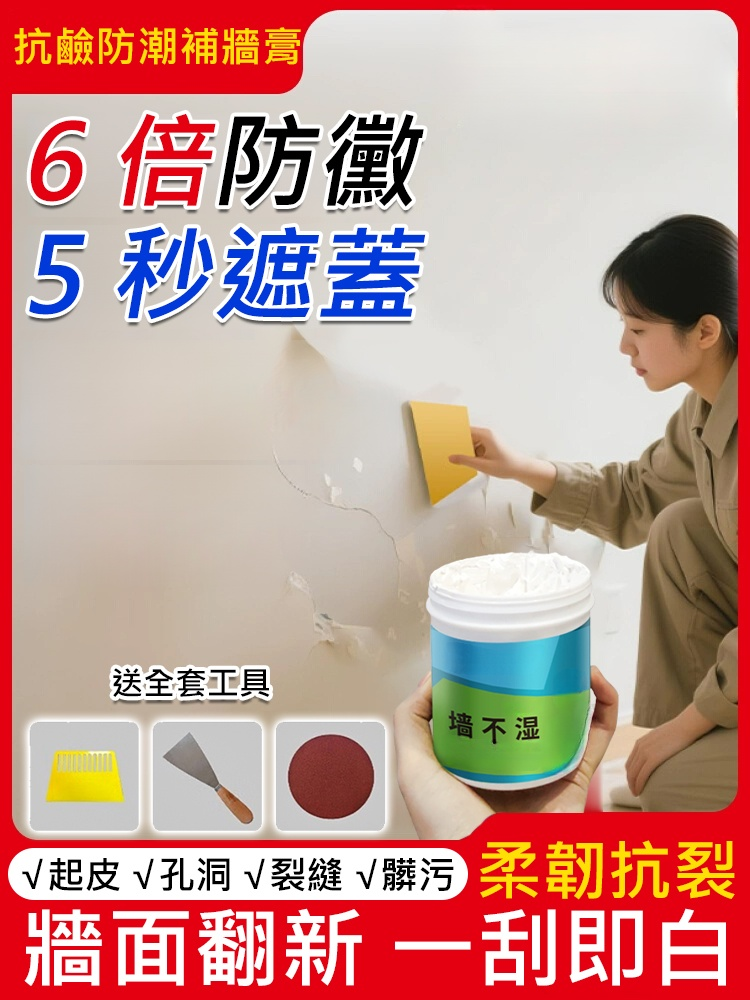 【6倍防黴牆不濕】抗鹼防潮補牆膏